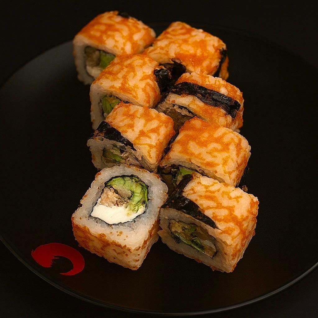 Сыр филадельфия, Снежный краб, Огурец, Икра масаго, Лосось Терияки (8шт, 225гр)