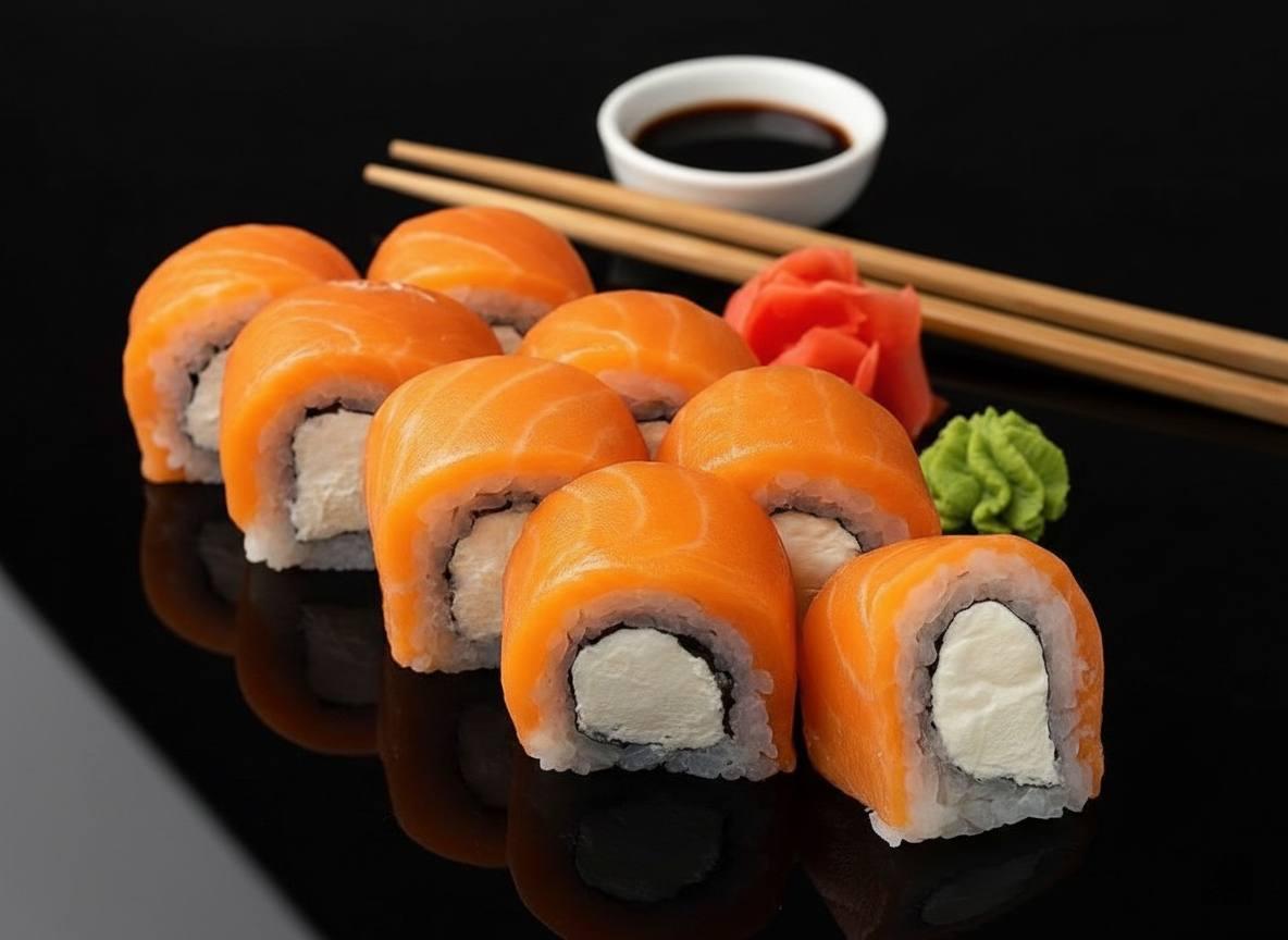 Сыр филадельфия, Чилийский лосось, Рис, (8шт, 300гр)