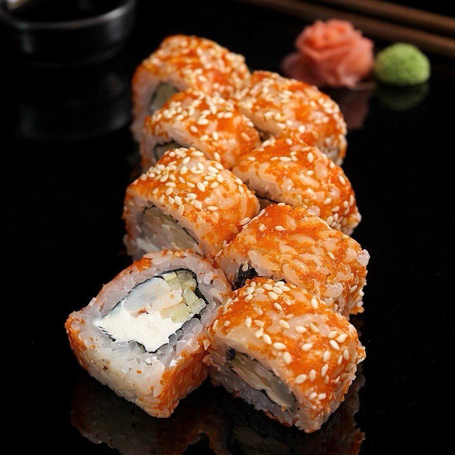 Сыр филадельфия, Снежный краб, Огурец, Икра масаго, Сливочная креветка (8шт, 210гр)
