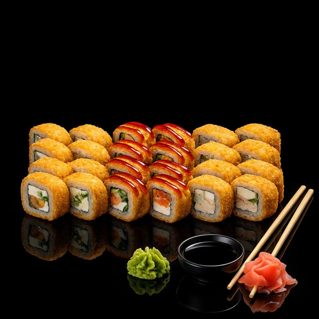 Темпура с Лососем, Темпура с Креветкой, Темпура с Крабом (24шт 950гр)
