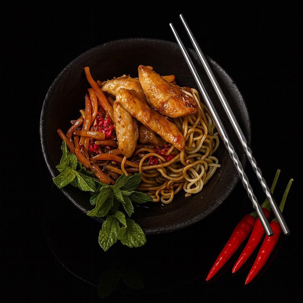 Удон с курицей острый соус