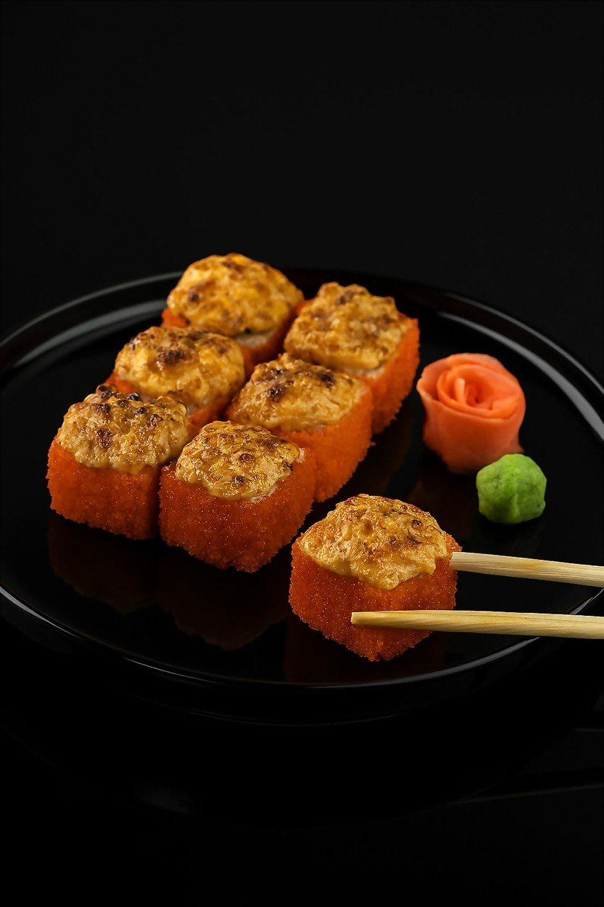 Творожный сыр, Лист салата, Помидор, Лосось терияки, Икра масаго, спайси соус (8шт, 226гр)